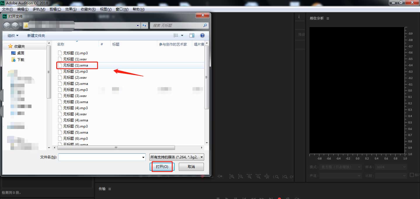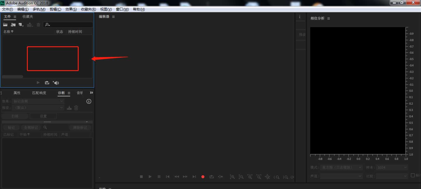 1、首先在電腦中打開AU軟件,點(diǎn)擊左上方區(qū)域,將需要的音頻文件素材導(dǎo)入。
