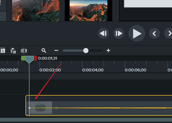 4、首先將前錨點 移到圖片合適的位置 , 可以是素材開頭,如圖