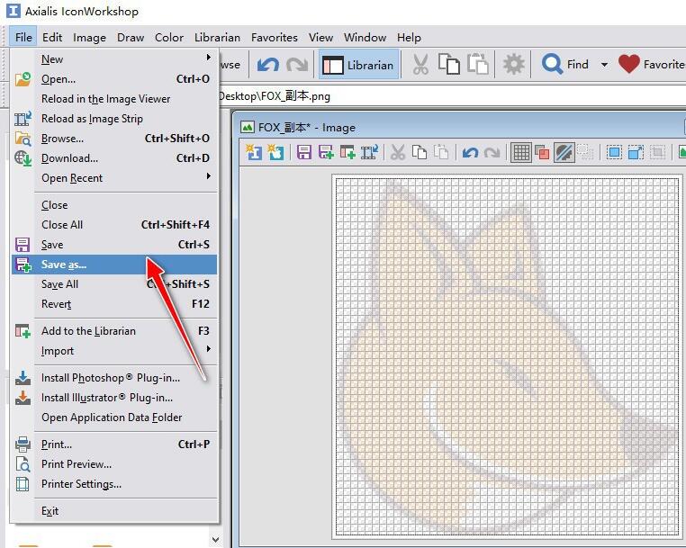 最后,選擇"File"->"Save as..."菜單項,將不透明度處理后的圖標導出到電腦上就可以了。