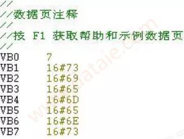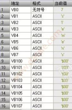 (發(fā)送字符siemens: 16#73; 16#69; 16#65; 16#6D; 16#65; 16#6E; 16#73)在數(shù)據(jù)塊中寫入,其中VB0是發(fā)送數(shù)據(jù)字符的個(gè)數(shù)不參與通訊。