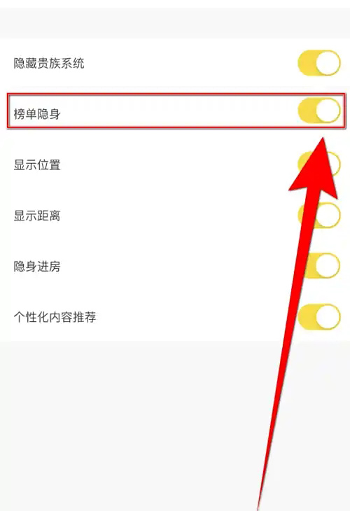 設(shè)置界面點擊【榜單隱身】后面的圓點