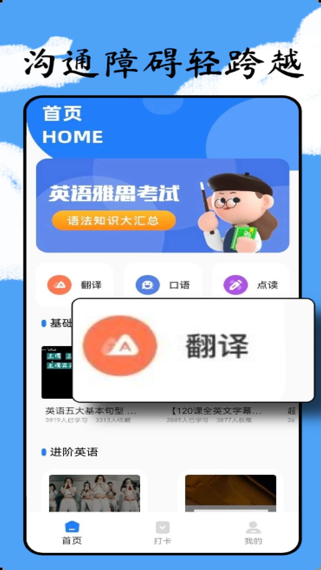 在線就能進(jìn)行口語練習(xí)學(xué)習(xí),幫助用戶提升自己的口語水平,開口就能說流利英語;