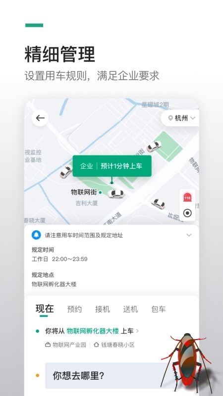 精確設置用車時間和地點,規(guī)范員工加班用車。