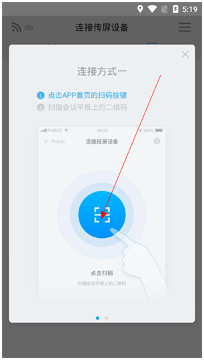 1.用手機或平板連接到大屏熱點或讓他們處于同一網(wǎng)絡(luò)中時,將其屏幕投射到大屏上。