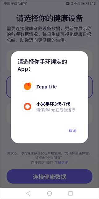 1、微信登錄app后即可選擇華為手表或小米手環(huán)的連接渠道點擊