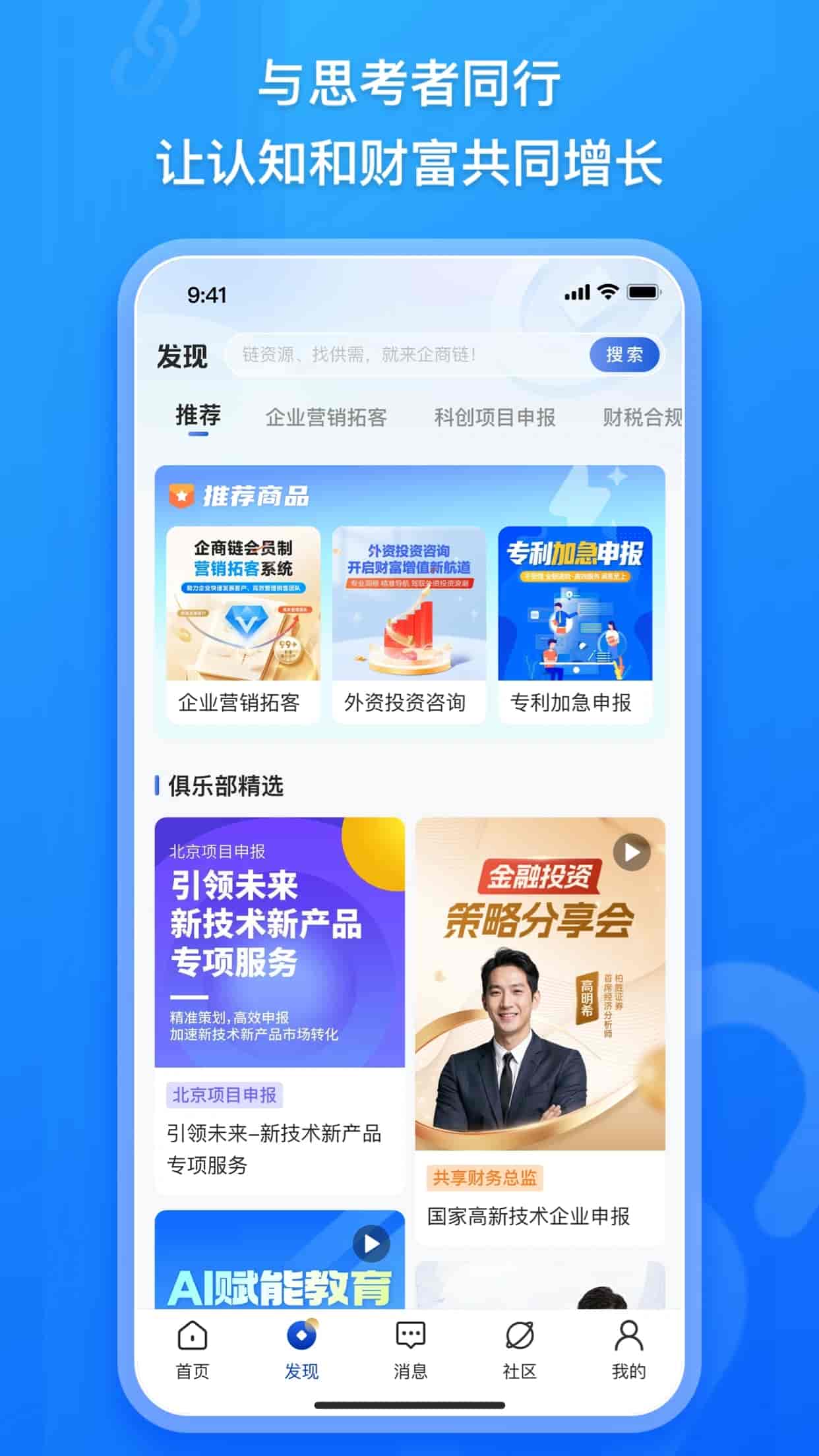 企商鏈手機客戶端是為打造財稅企服高價值賦能工具企商鏈構(gòu)建全國代賬行業(yè)資源生態(tài)圈,為打造財稅企業(yè)服務(wù)高價值賦能,助力全國代賬機構(gòu)客戶增長,凈利潤提升,為客戶成功做主人翁;交朋友,做生意,千萬老板匯聚,利益共享。
