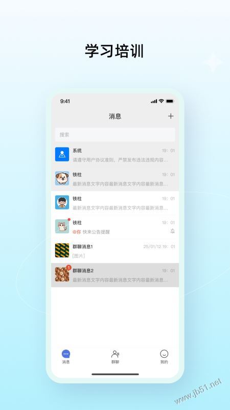 群聊互動消息及時通知提醒,便于能及時在應用中查看,并能立即在線回復;