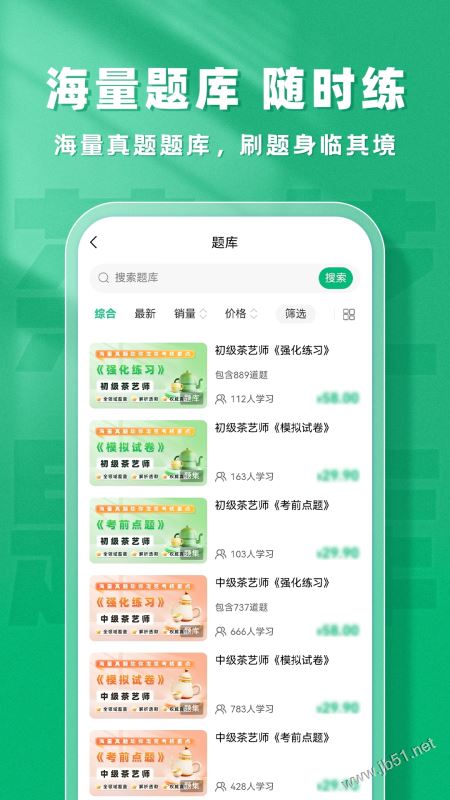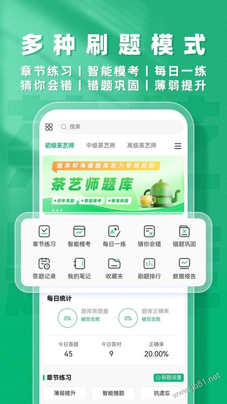茶藝師題庫幫app 是一款為茶藝師考試專屬打造的一站式備考軟件,在這里可以讓用戶享受到非常全面的備考服務,多樣化的題庫資源將各種考點知識精準覆蓋,題型全面,可以讓用戶告別無效刷題,提高用戶的刷題效率,讓用戶可以在這里更加高效的刷題備考,幫助用戶逐一強化各種知識薄弱點,系統(tǒng)會將用戶的各種歷史錯題自動收集整理,方便用戶隨時鞏固練習各種錯題,每道試題都附帶有精準的題目解析,可以讓用戶精準掌握每道試題的考點知識,幫助用戶快速提分,順利的通過考試,有需要的朋友快來本站下載茶藝師題庫幫使用吧!