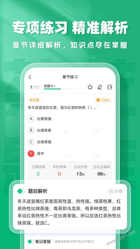 這是一款非常便捷的茶藝師考試刷題軟件,可以讓用戶隨時在這里刷題練習,便于用戶充分利用自己的碎片化時間刷題學習,助力用戶更加便捷、高效的備考學習,提升備考學習效率,將各種知識薄弱點全面性的提升學習,幫助用戶提高答題正確率順利通關(guān)考試。