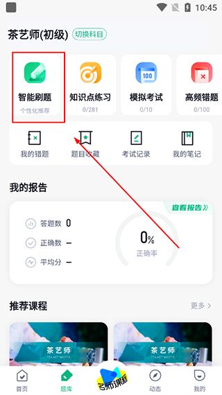 1、登錄茶藝師考試聚題庫app,點擊下方【題庫】;