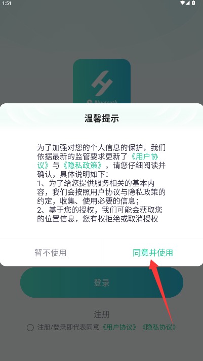 1、打開應(yīng)用后仔細(xì)閱讀服務(wù)協(xié)議和隱私政策,確認(rèn)后點擊同意并繼續(xù)按鈕進(jìn)入應(yīng)用。