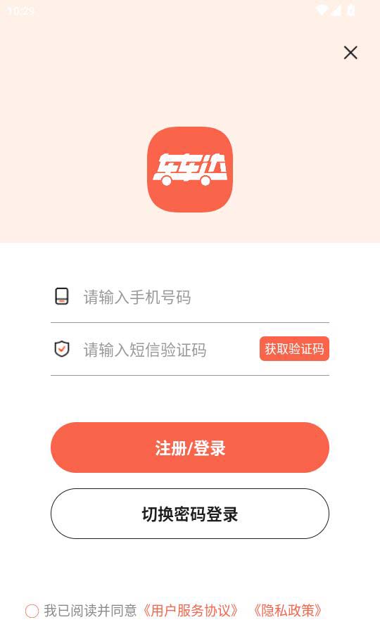 2.輸入手機號碼、短信驗證碼點擊“注冊/登錄”一鍵登錄APP