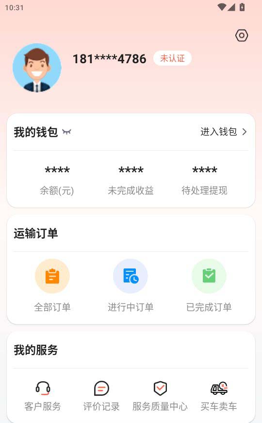 【賬戶中心】:快速注冊/登錄,并完成企業(yè)與司機身份的綁定認證,讓您即刻接單。