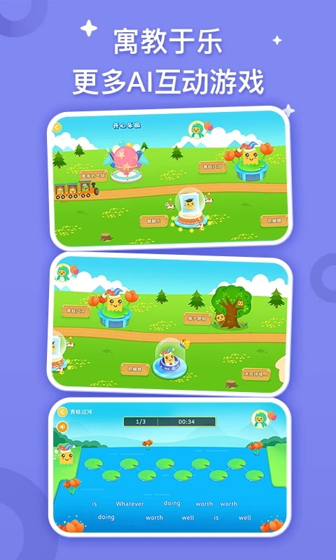 2、孩子可以體驗(yàn)線上過(guò)山車的游戲,從游戲中可以練習(xí)英語(yǔ)題目;