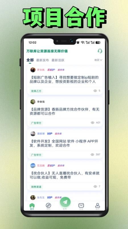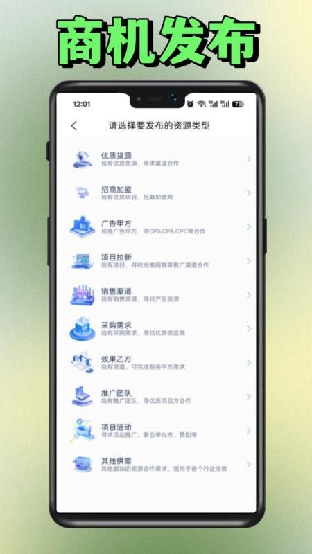 2、多種資源發(fā)布:支持多種資源類型的發(fā)布,幫助用戶在短時間內(nèi)找到合適的合作伙伴。