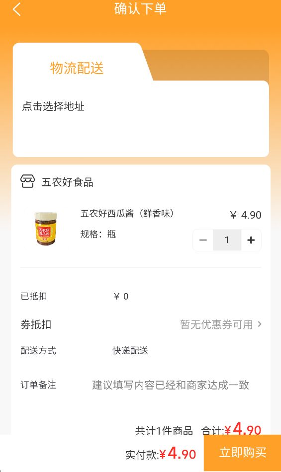 5、輸入收貨地址繼續(xù)點擊右下角的立即購買就可以啦。