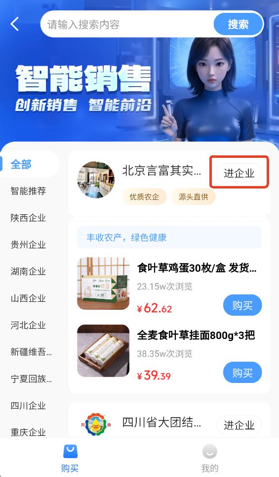 2、找到你想要購買的產(chǎn)品,點擊商品上方的【進企業(yè)】。