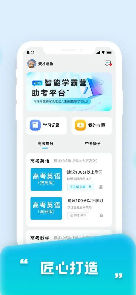 智能學(xué)霸營app是一款聚焦中高考升學(xué)的垂直化助考平臺,以“數(shù)據(jù)驅(qū)動個性化學(xué)習(xí)”為核心,構(gòu)建“課程體系+智能工具+陪伴”三維一體的備考生態(tài)。用戶們可以自身的學(xué)習(xí)能力來選擇不同的課程,有基礎(chǔ)版課程和拔高版課程,用戶們也可以借助智能算法來獲得較有參考性的志愿報告。