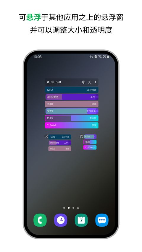 支持在桌面小組件和懸浮窗中運行計時器,方便用戶隨時查看和控制計時器。