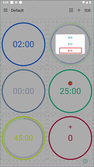 方式二:長按進入計時器設(shè)置界面,滑動到最底部,選擇刪除即可。
