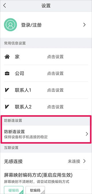 2、然后在這里找到并點擊“防斷連設置”按鍵;