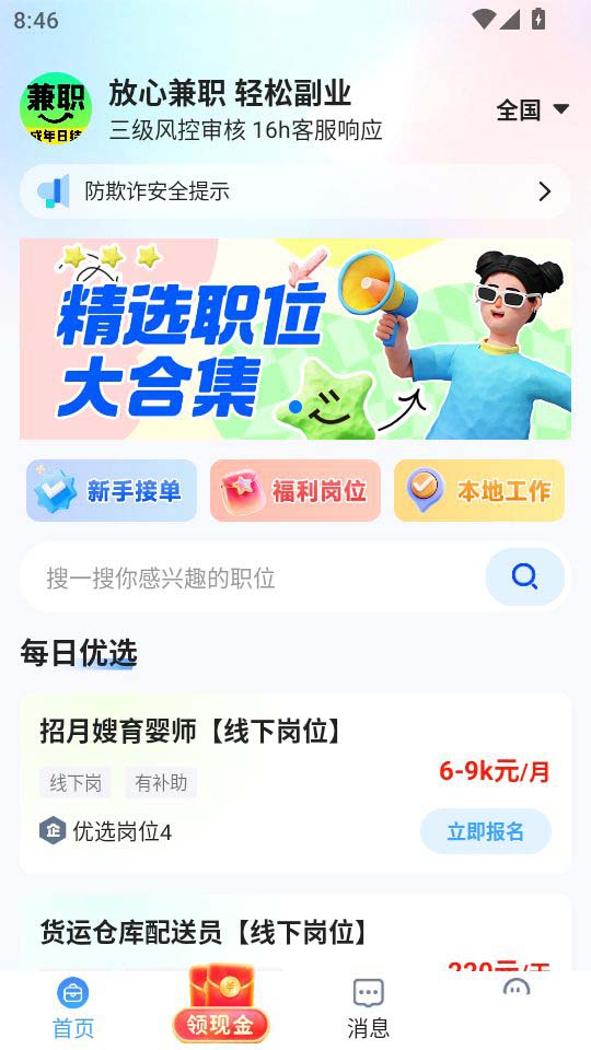 主推日結兼職模式,平臺嚴控薪資發(fā)放流程,用工糾紛平臺全程介入解決。