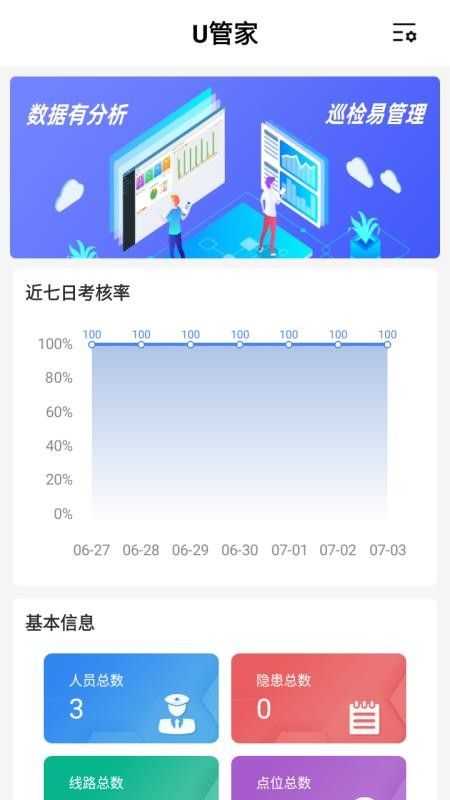 U管家app讓巡檢管理人員以后可以安排好每天的巡檢任務(wù),這樣才可以提升巡檢效率,平臺(tái)會(huì)自動(dòng)統(tǒng)計(jì)每一次的巡檢數(shù)據(jù)信息,管理人員可以通過數(shù)據(jù)清楚的知道巡檢任務(wù)的情況,這樣就無需進(jìn)行復(fù)雜的操作,可以讓巡檢人員嚴(yán)格按照加護(hù)執(zhí)行,確保巡檢圓滿進(jìn)行!