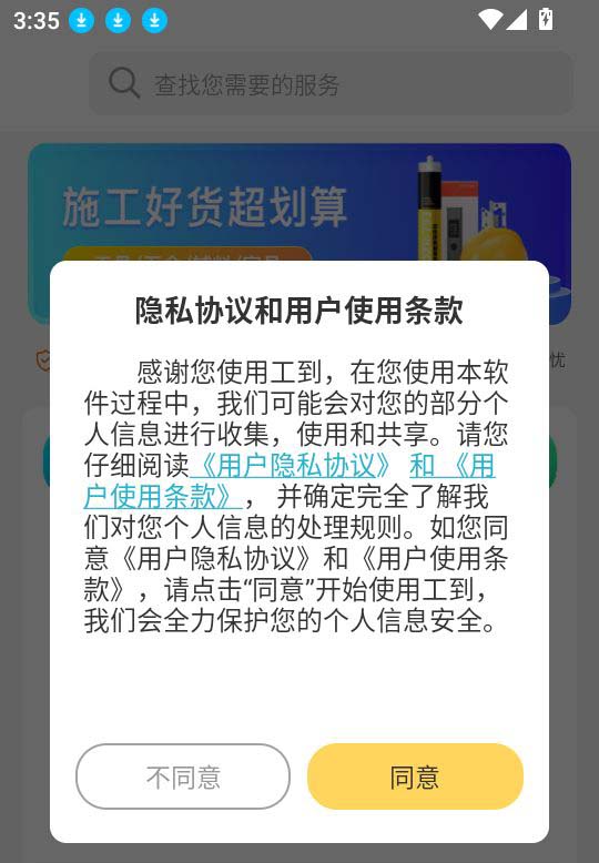 2、對平臺的隱私協(xié)議條款都可閱讀,點(diǎn)擊“同意”按鈕來進(jìn)入app中。