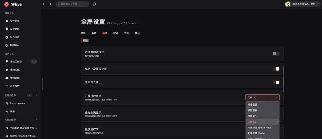 除此之外,該項目的設(shè)置項也蠻多的,登錄自動簽到、側(cè)邊欄以及音質(zhì)選擇等等都有的。當(dāng)然了,音質(zhì)選擇上還是需要你本身已經(jīng)是會員,該項目并不具備解鎖會員內(nèi)容的功能,不過可以解鎖一些灰掉的音樂,也挺不錯。