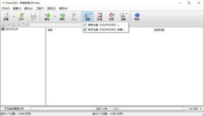 運(yùn)行PowerISO,軟件將自動(dòng)創(chuàng)建一個(gè)空編譯。