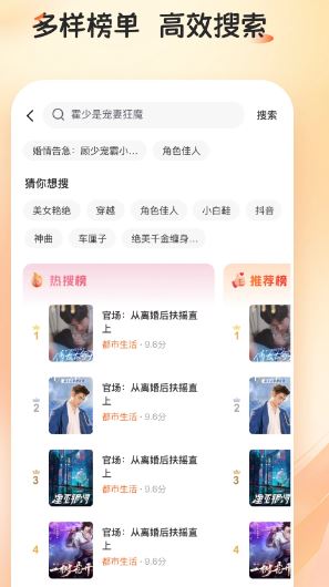 4、內(nèi)容檢索與互動:支持關(guān)鍵詞搜索精準(zhǔn)查找內(nèi)容,分類篩選功能便于快速定位廣播劇、歷史小說等類別;提供“聽友俱樂部”,用戶可創(chuàng)建小組共享書單,增強互動性。