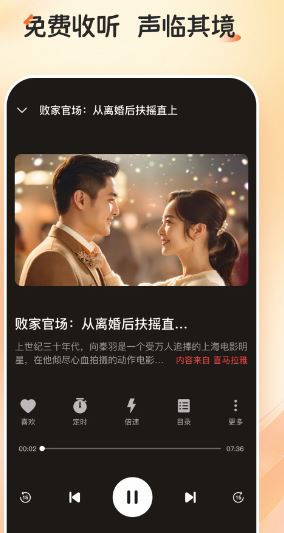 1、覆蓋有聲書、廣播劇、知識付費等多種形式,既有免費資源也有獨家精品,滿足不同用戶的內(nèi)容需求。