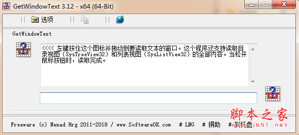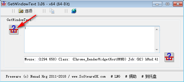 GetWindowText是一款非常實(shí)用的窗口文字提取工具,這款工具能夠自動(dòng)提取目錄視圖和列表視圖的全部內(nèi)容,而且使用非常方便,只需要打開軟件,將圖標(biāo)拖動(dòng)到你需要提取文字信息的位置,它就會(huì)自動(dòng)幫你提取該位置的文字。