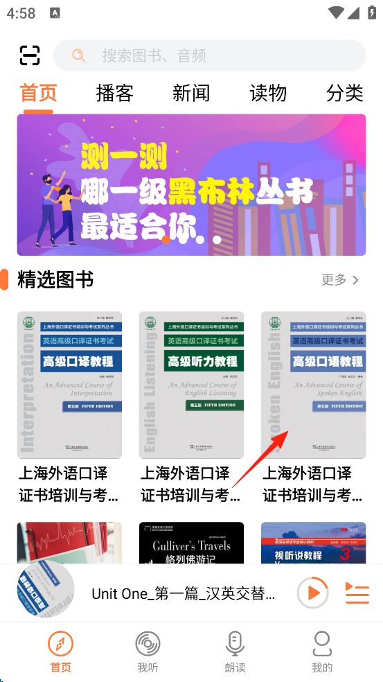 2、超全圖書資源,更涵蓋英語、德語、法語、西班牙語等八大語言類電臺。