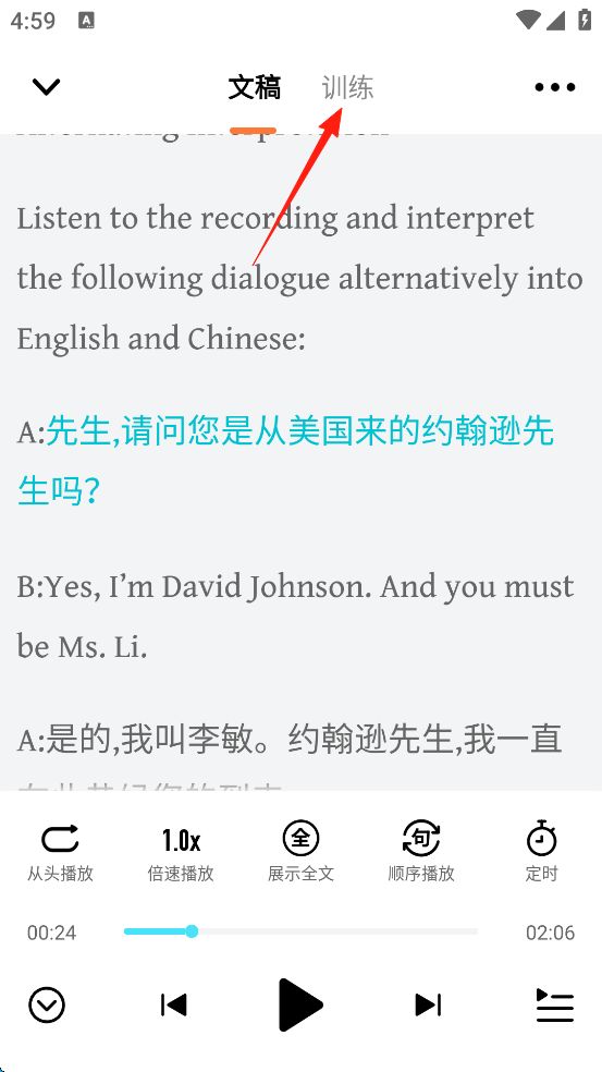 5、音頻播放時可隨時在中英文文字間進行切換,以幫助不同英文水平的用戶閱讀、理解。