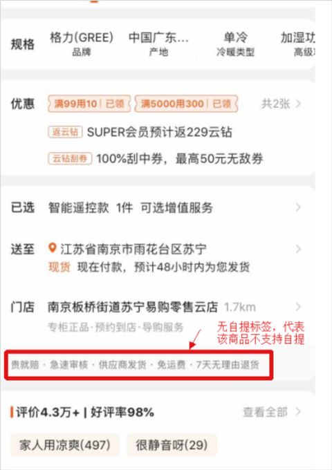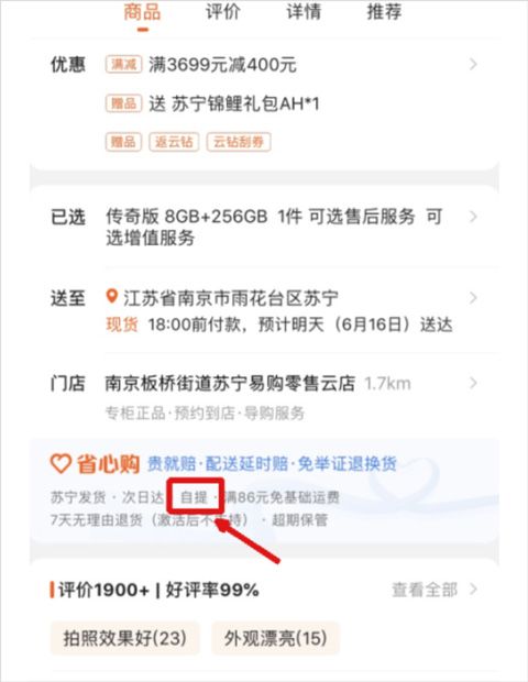 4、備注:蘇寧國際商品、供應商/商家發(fā)貨商品不支持自提。