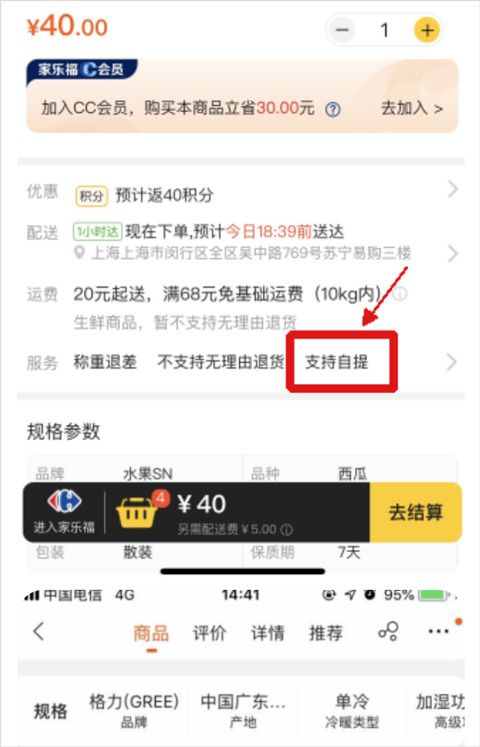 1、若商品服務標簽顯示“自提”,代表支持自提。