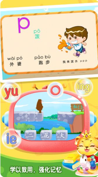 采用趣味交互形式,通過原創(chuàng)劇情動(dòng)畫和互動(dòng)游戲,全方位訓(xùn)練孩子拼音認(rèn)知、記憶、發(fā)音、拼讀、書寫等能力。
