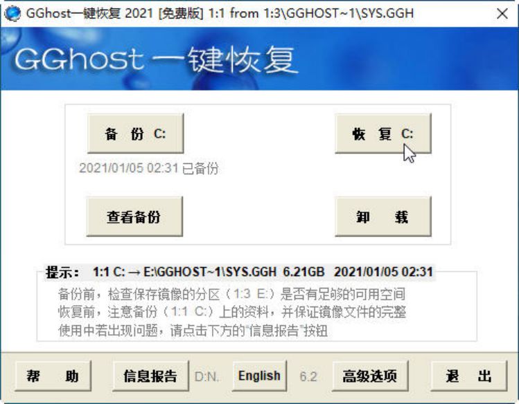 GGhost一鍵恢復是基于ghost(v11.02)和grub4dos的免費系統(tǒng)備份和還原工具,具有良好的兼容性、易用性與豐富的自定義功能。支持無論是32位或是64位的Windows 2000、XP、2003、Vista、2008和Windows 7、Windows 10等主流操作系統(tǒng)。支持簡體中文、繁體中文及其它語言的系統(tǒng)。
