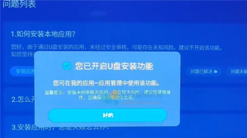 3、界面顯示開啟U盤安裝功能