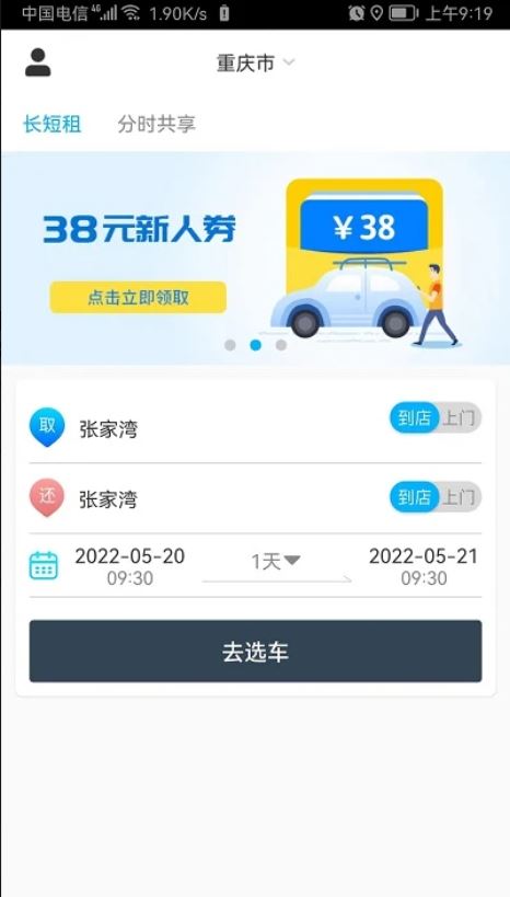 1.可以自行在應(yīng)用中查詢需要出行的車輛,并一鍵在線租用;