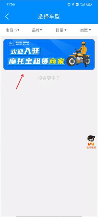 2、會看到有一個通告:歡迎入駐,摩托車寶租賃商家,點(diǎn)擊進(jìn)入里面。