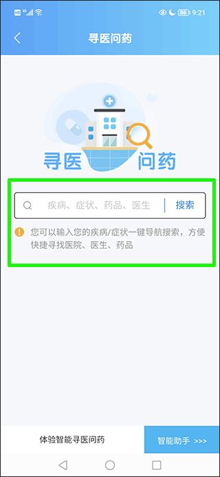 1、首先,打開軟件,在首頁找到并點(diǎn)擊“尋醫(yī)問藥”按鍵;