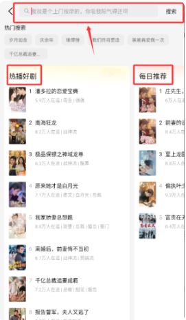 3、點擊搜索欄,可輸入內(nèi)容搜索,也可查看 “熱播好劇”“每日推薦”。