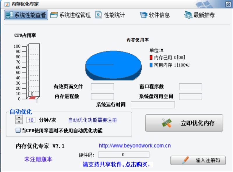3、系統(tǒng)底層操作內(nèi)存優(yōu)化,優(yōu)化后不影響程序運行及速度;
