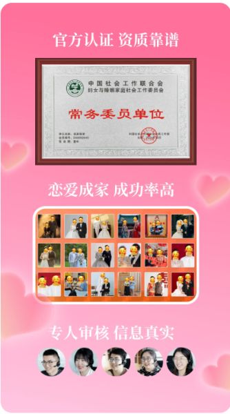 1、為真心尋找另一半的用戶提供安全的約會服務,幫助用戶找到好的婚姻。