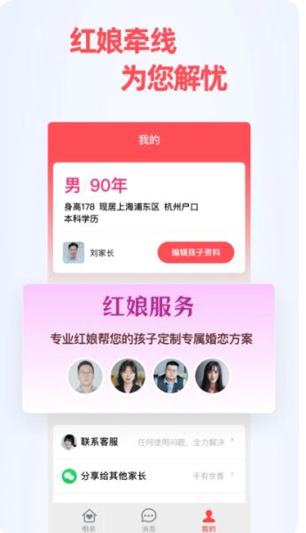 5、紅娘服務,專業(yè)的紅娘老師入駐,幫助用戶的孩子定制專屬的婚戀方案;