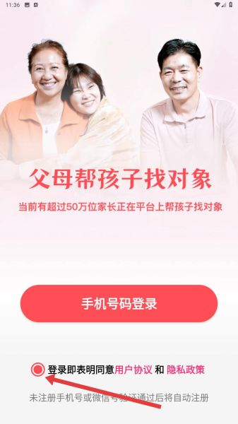 3、在點擊前務必勾選登錄即表明同意用戶協(xié)議和隱私政策前的圓圈,確保同意相關協(xié)議后再進行登錄操作。