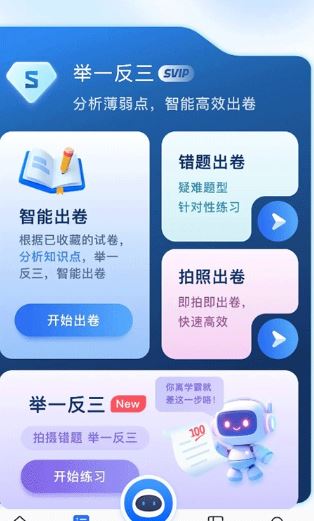 1、打開試卷100App,在首頁有拍試卷、收集錯題、作業(yè)批改以及拍照解題等一眾學習工具;