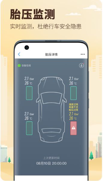 2、通過應(yīng)用就能查看胎壓數(shù)據(jù),確保胎壓正常,出行更加安全有保障。